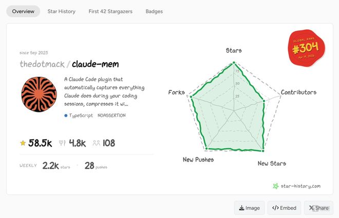 早在2025年9月1日,GitHub上就悄悄冒出了一行名叫npx claude-mem install的终端安装代码。